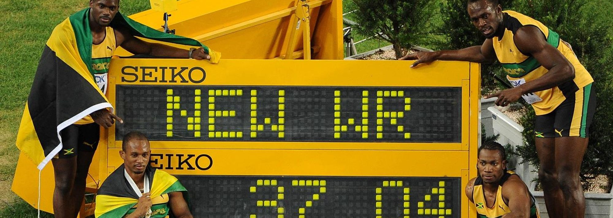 Jamaica's world-record 4x100m team at the 2011 IAAF World Championships (© AFP / Getty Images)