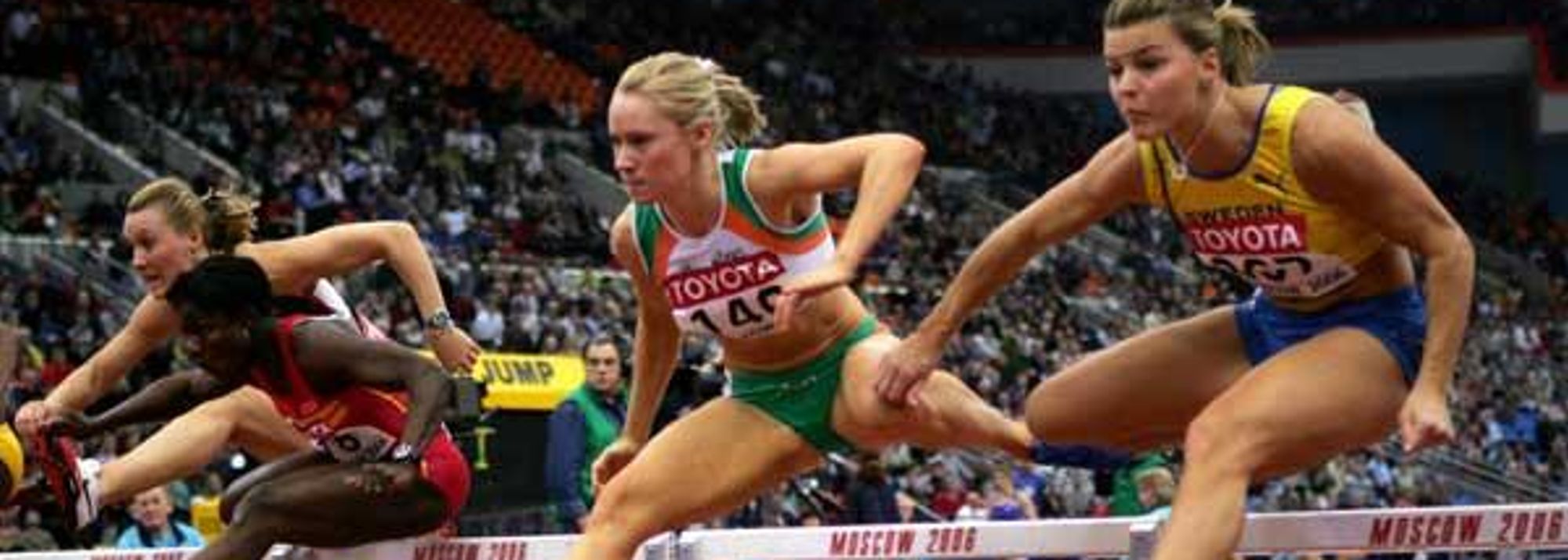 Derval O'Rourke of Ireland in action on her way to gold in the 60m Hurdles final (© Getty Images)