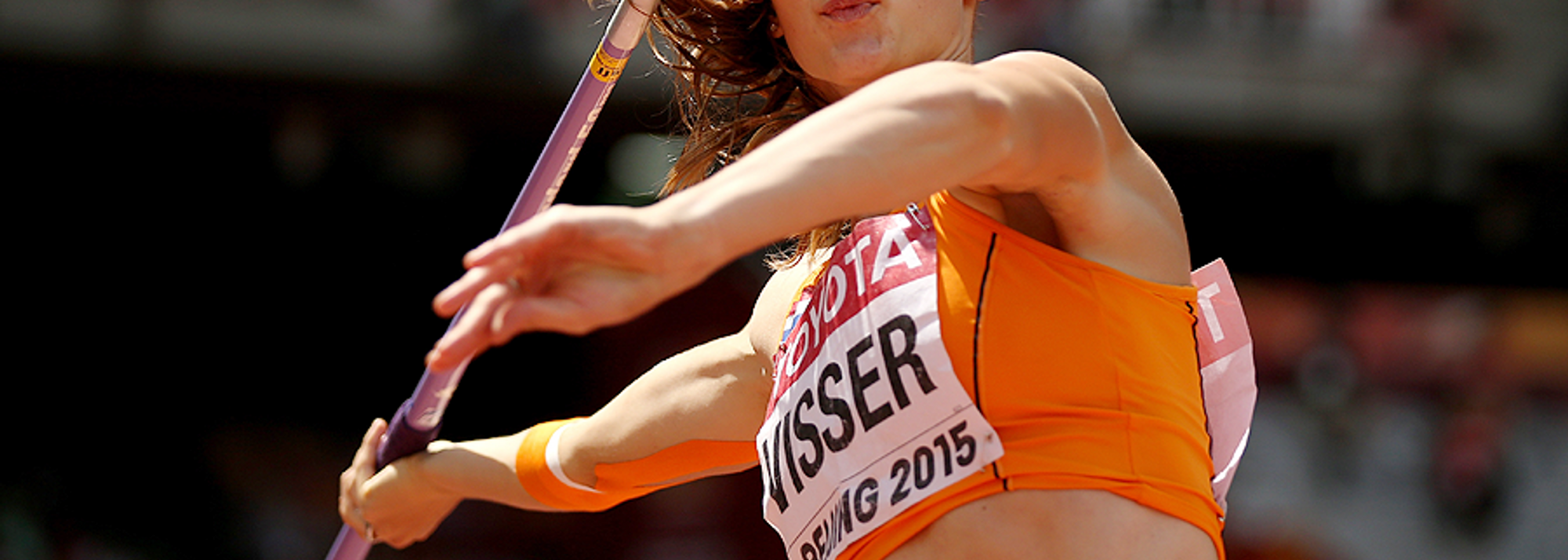 Nadine Visser in the heptathlon javelin at the IAAF World Championships, Beijing 2015 (© Getty Images)