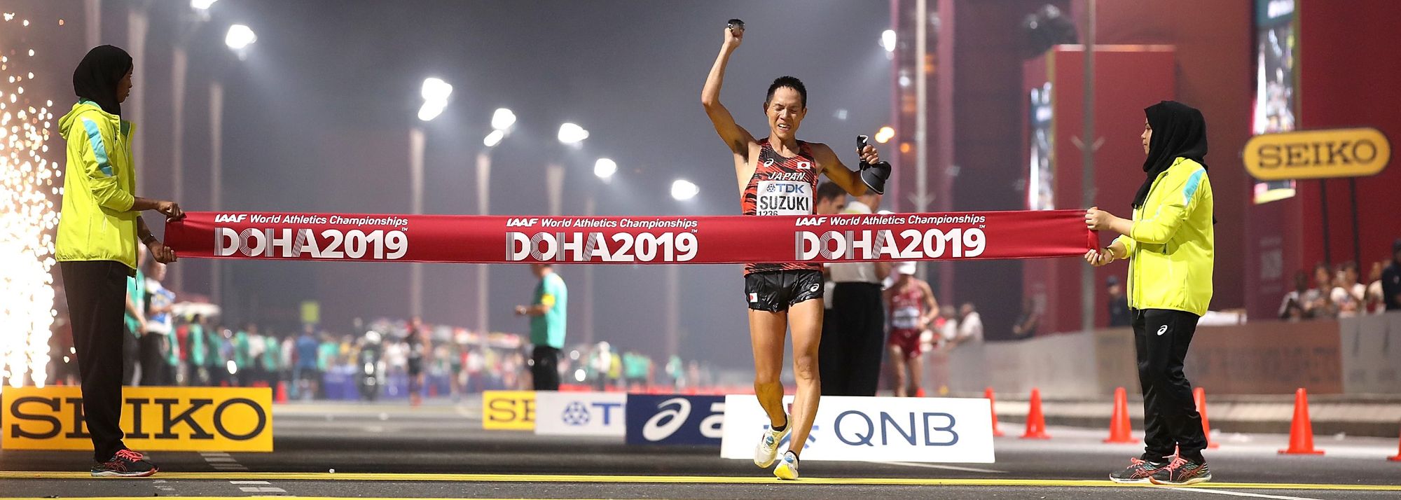 Yusuke Suzuki wins the men's 50km race walk title at the World Athletics Championships Doha 2019 (© Getty Images)