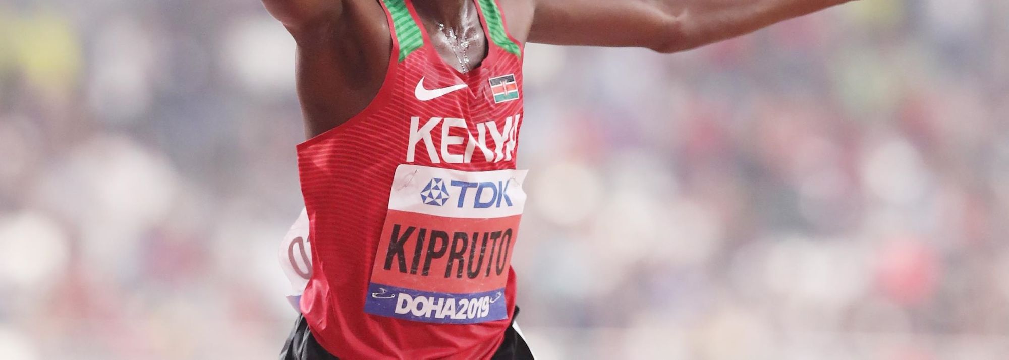 Conseslus Kipruto after winning the steeplechase at the IAAF World Athletics Championships Doha 2019 (© Getty Images)