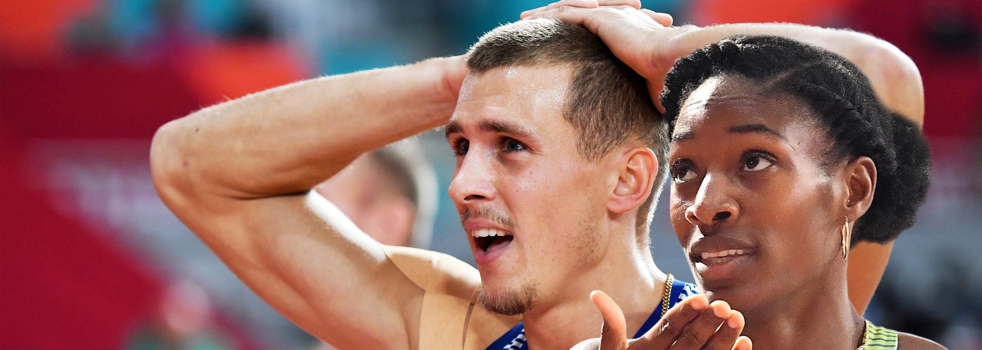 Estonia's Maicel Uibo and Shaunae Miller-Uibo of The Bahamas at the IAAF World Athletics Championships Doha 2019 (© AFP / Getty Images)