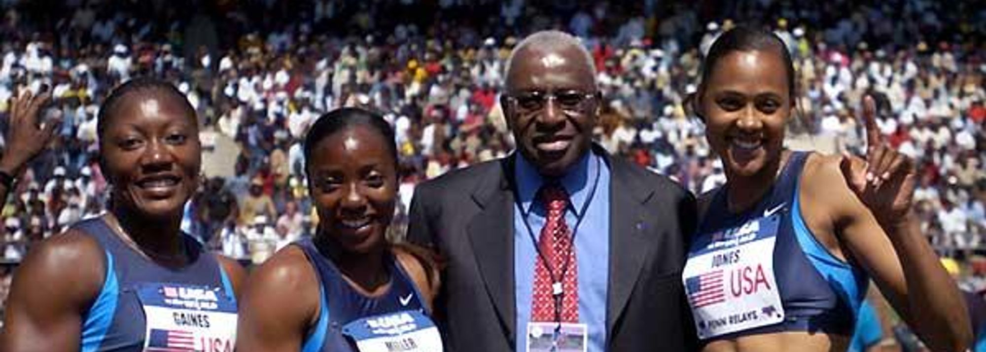 In the 4 x 200, Jones joined former training partner LaTasha Colander, Gaines and Miller to win in 1:29.40 during a 1-2 U.S. sweep.