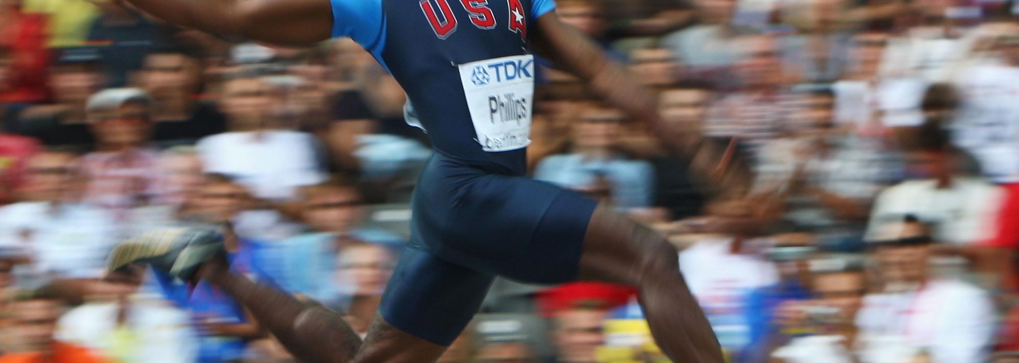 World Leader Dwight Phillips of the United States in flight in the men's Long Jump final at the 12th IAAF World Championships in Athletics in Berlin (© Getty Images)