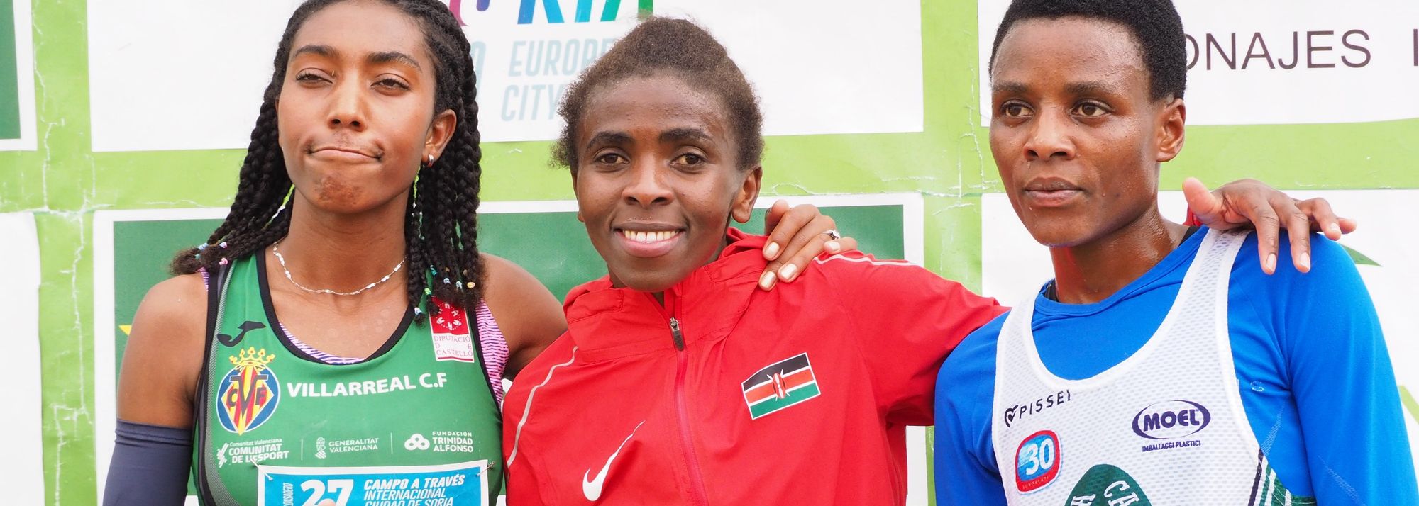 Likina Amebaw Ayel, Lucy Mawia Muli and Francine Niyomukunzi at the Cross Internacional de Soria (ยฉ Cross Internacional de Soria)