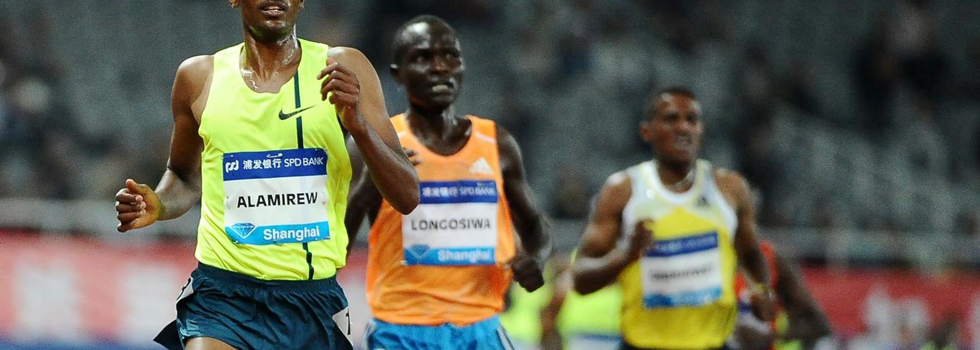 Yenew Alamirew wins the 5000m at the 2014 IAAF Diamond League meeting in Shanghai (© Errol Anderson)