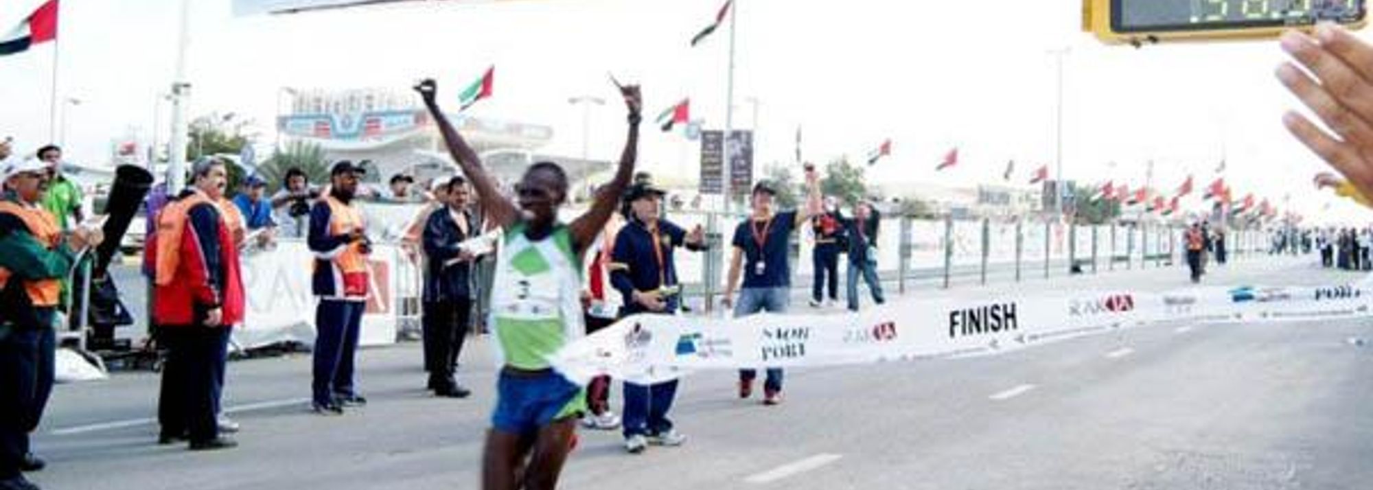 Sammy Wanjiru celebrates his Half Marathon World Record in Ras al Khaimah (© Pat Butcher)