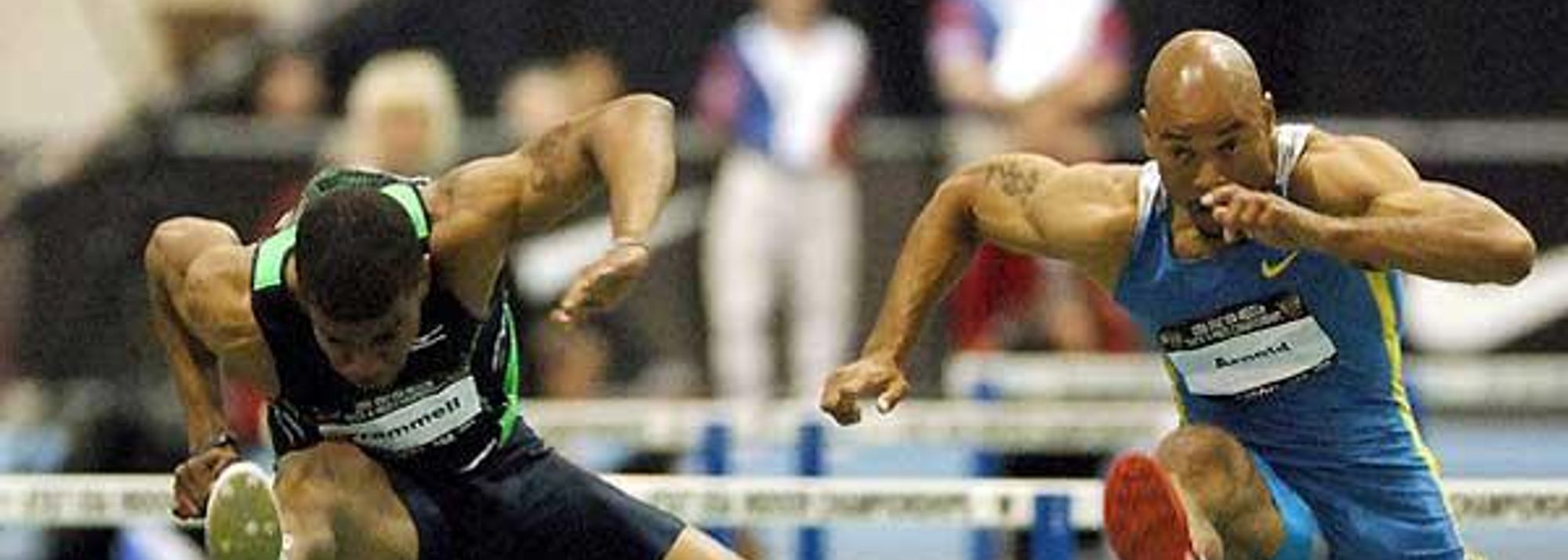 Trammell just missed becoming the first athlete to win a hurdle-sprint double in the USA Indoor Championships. Trammell, who was World Indoor champion in 2001 led from the start to win the 60m Hurdles in 7.46 with Dominique Arnold (7.51) and Anwar Moore (7.52) following him home. The winner was embraced by Arnold as the time was displayed on the video board, and he then took a victory lap before jumping to the blocks 18 minutes later for the 60m final.
