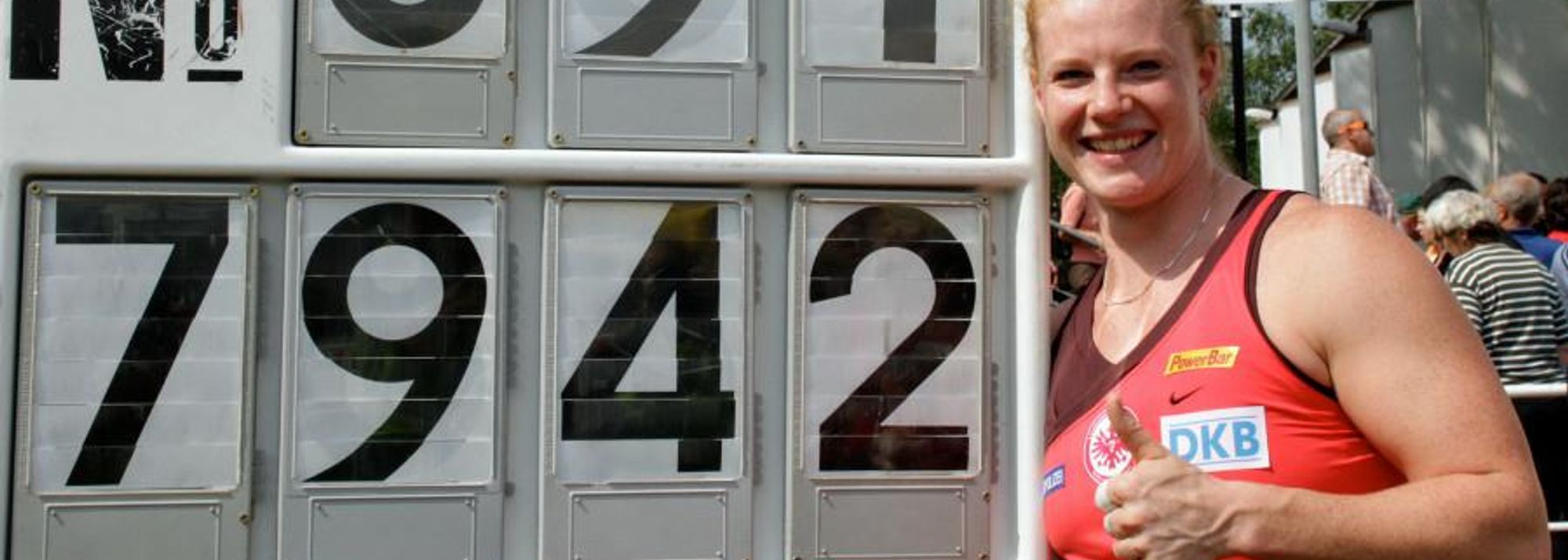 Betty Heidler with her World Record numbers in Halle (© Mike Schmidt)