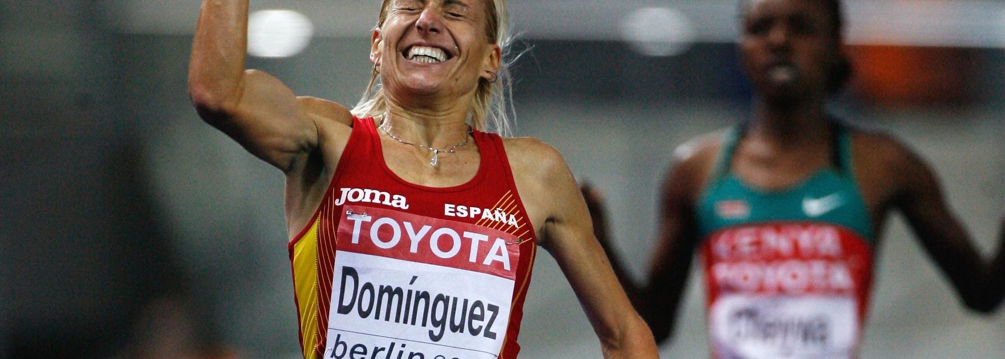 Yet, the reasonable pre-final favourite role in Berlin went for Russia’s Gulnara Samitova-Galkina, the reigning World record holder and Olympic champion from Beijing, an event which witnessed how Domínguez –still a complete beginner for the event at that point – fell when she was negotiating the barrier prior to the final water jump while still in the mix for the minor podium medals.