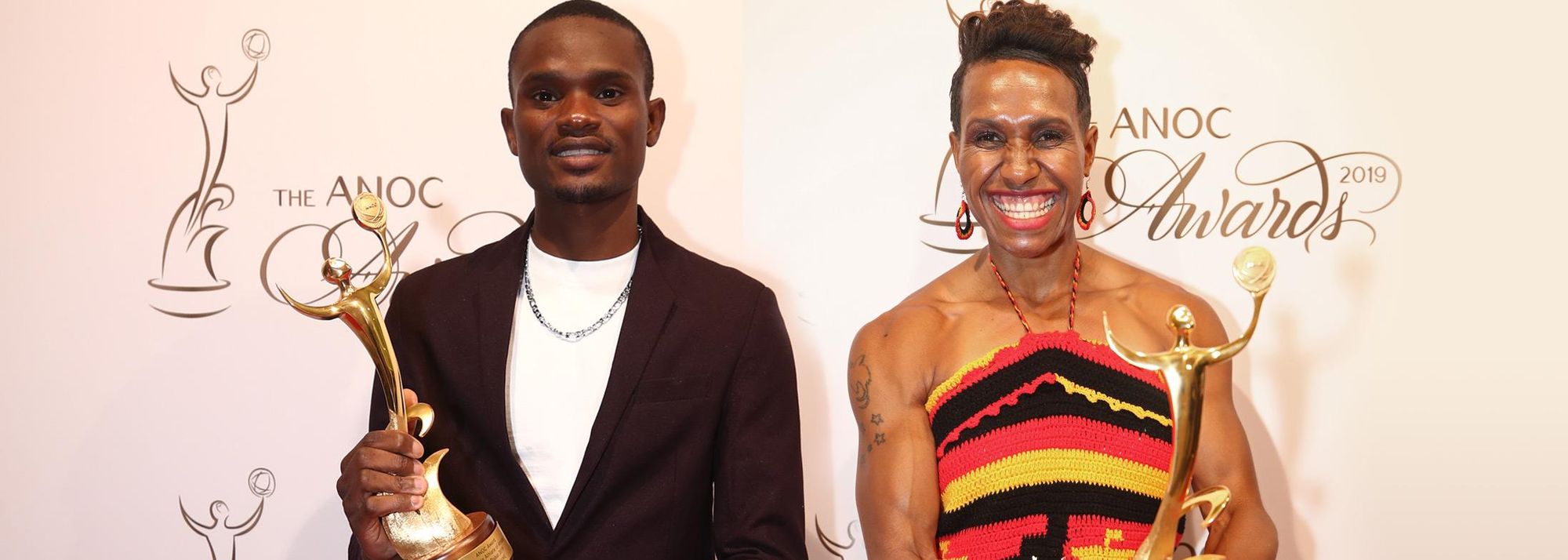 Sprinters Sydney Siame from Zambia and Toea Wisil from Papua New Guinea were honoured for their achievements this year at the Association of National Olympic Committees (ANOC) Awards 2019 in Doha on Thursday (17).
