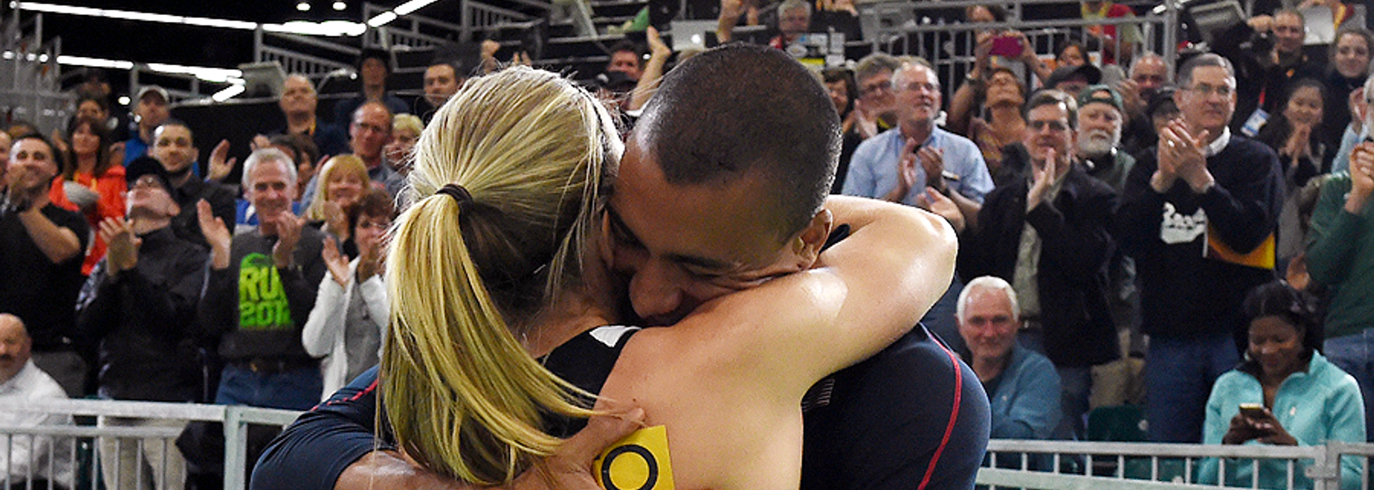Brianne Theisen-Eaton and Ashton Eaton at the IAAF World Indoor Championships Portland 2016 (© AFP / Getty Images)