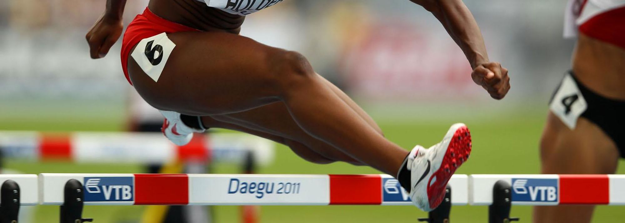 Nikkita Holder of Canada in action in the women's 100 metres hurdles heats (© Getty Images)