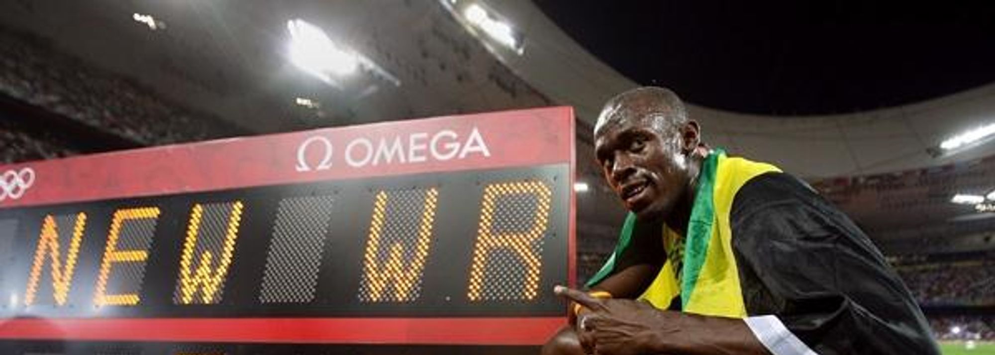 Usain Bolt with the world record figures: 9.69 (© Getty Images)