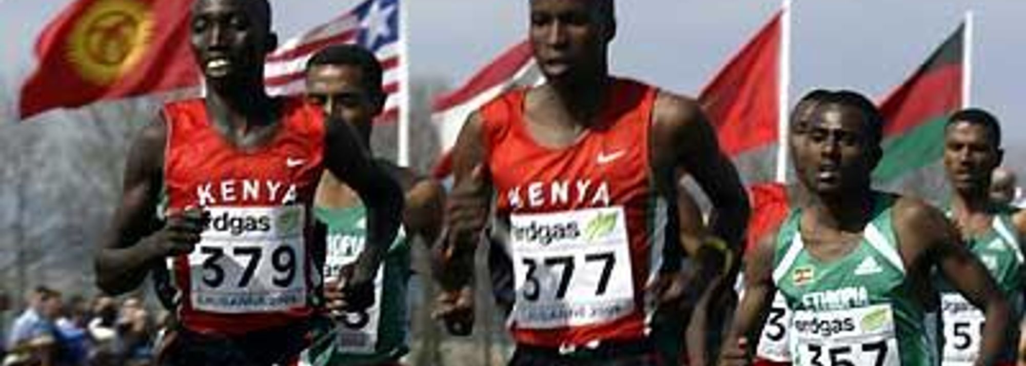 Sileshi Sihine of Ethiopia (357) running the 2003 World Cross long race in Lausanne (© Getty Images)