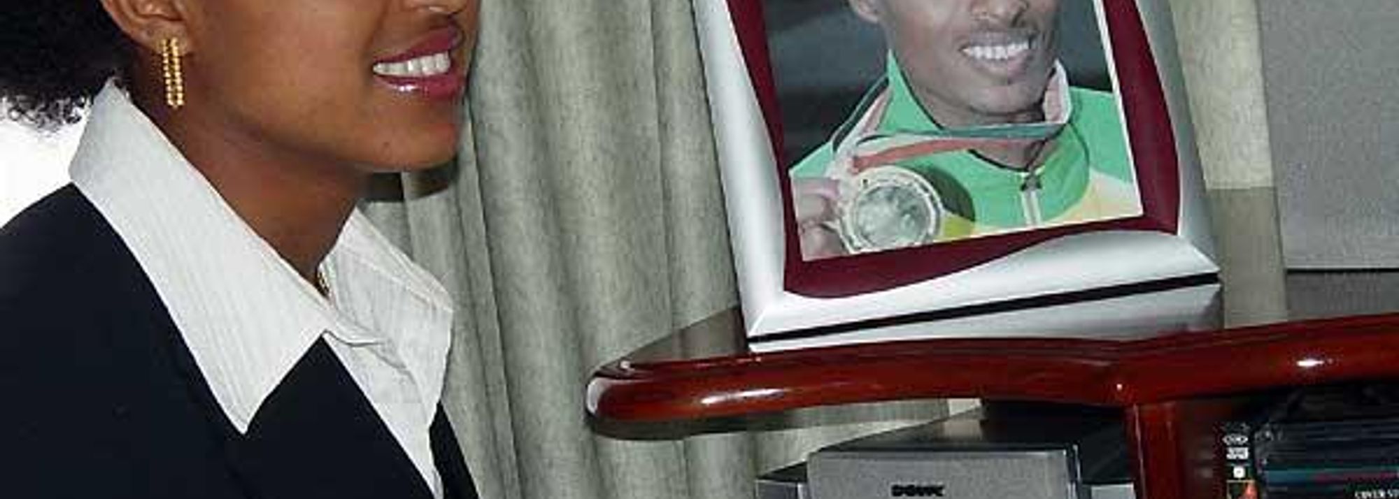 The late Alem Techale with a photo of Kenenisa Bekele (© Biniam Mengesha)