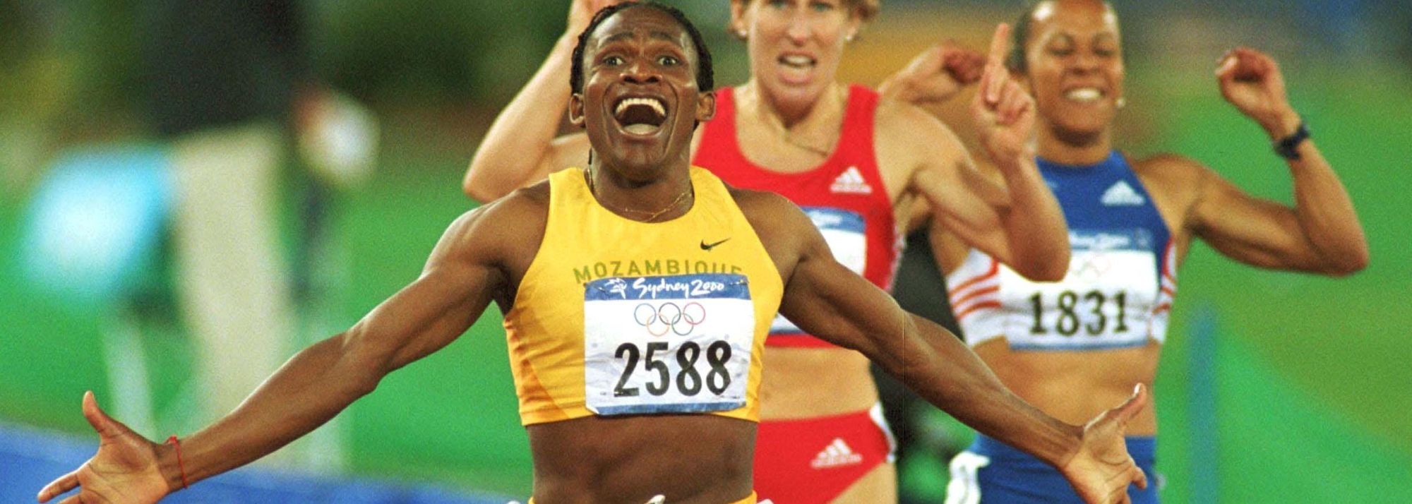 Maria Mutola winning the 2000 Olympic Games 800m title (© Getty Images)