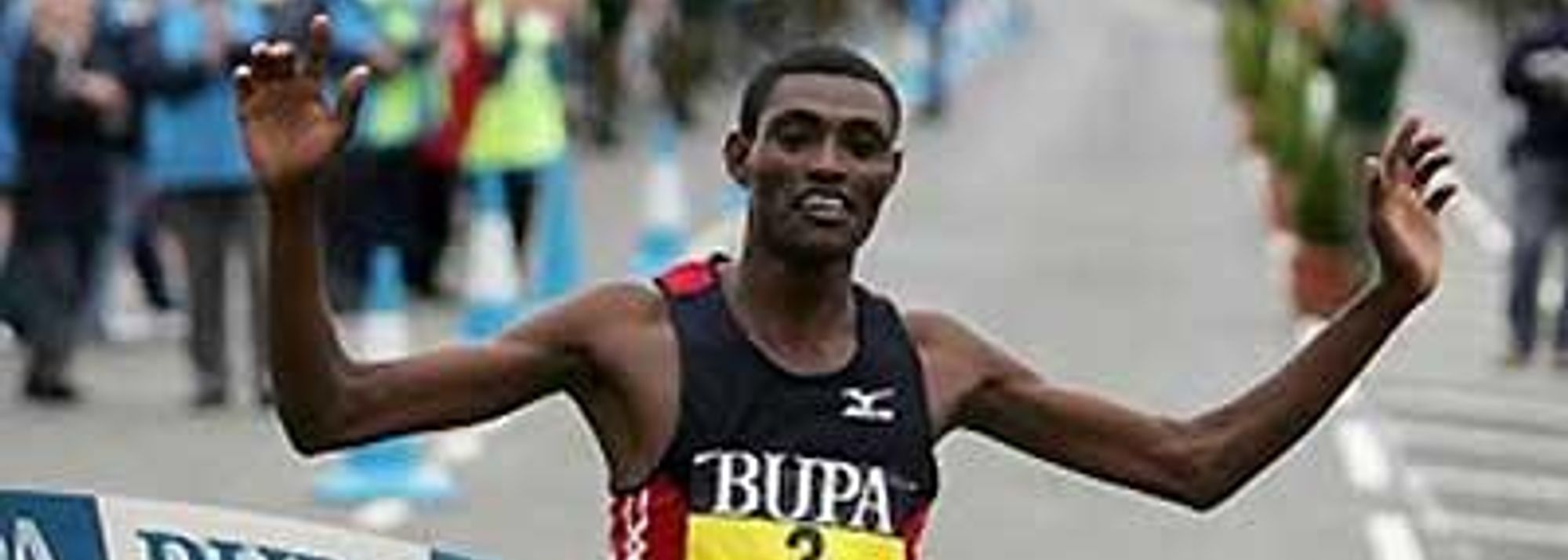 Although the pace slowed as the course rose towards South Shields, Berhanu kept pushing in pursuit of Paul Kosgei's two-year-old course record and his efforts paid off as he became the fastest ever Ethiopian. Tesfaye Tola ran 59:51 in Malmo in 2000, and Gebrselassie 59:41on the downhill course in Lisbon in 2002.