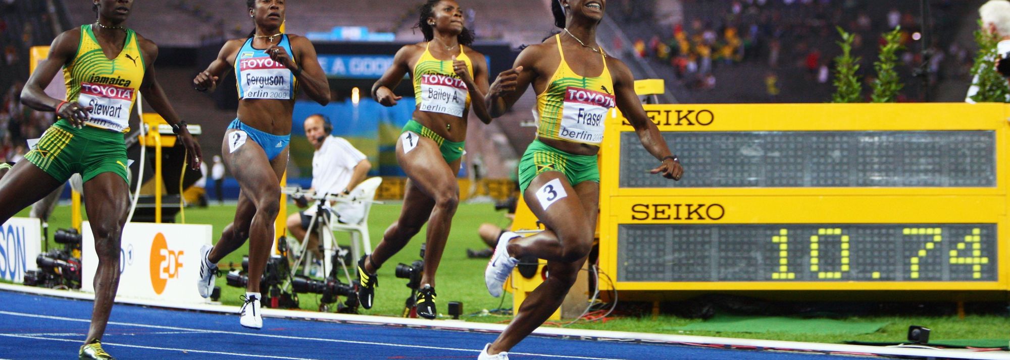 The Jamaican sprint success story continued on Day Three of the 12th World Championships in Athletics. Shelley-Ann Fraser confirmed her Olympic title winning form by adding the world 100m gold in a faster time than Beijing, 10.73sec. That equals the third fastest in history, and she was followed home by compatriot Kerron Stewart, who won silver with a personal best equalling 10.75sec. Carmelita Jeter of the USA won bronze with 10.90sec.