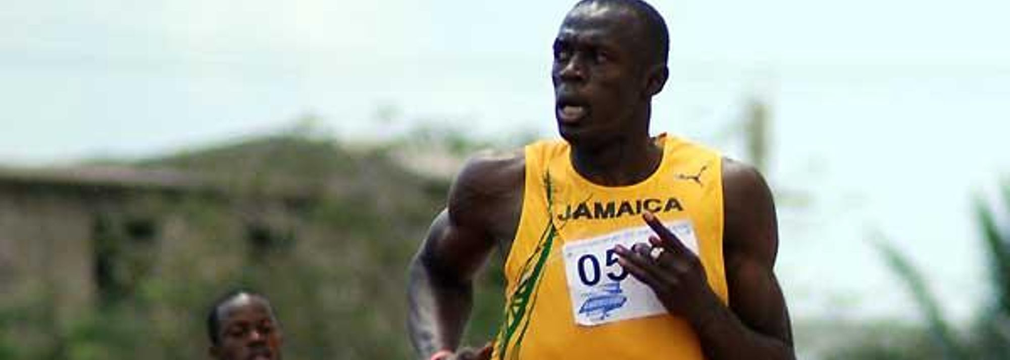 Bolt running 10.03 at the Lucozade Sport/G.C. Foster Classics in Spanish Town (© Anthony Foster)