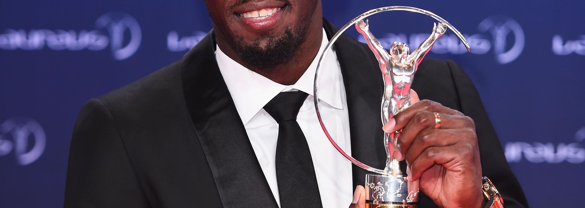 Usain Bolt and his 2017 Laureus World Sportsman of the Year Award (© Getty Images)