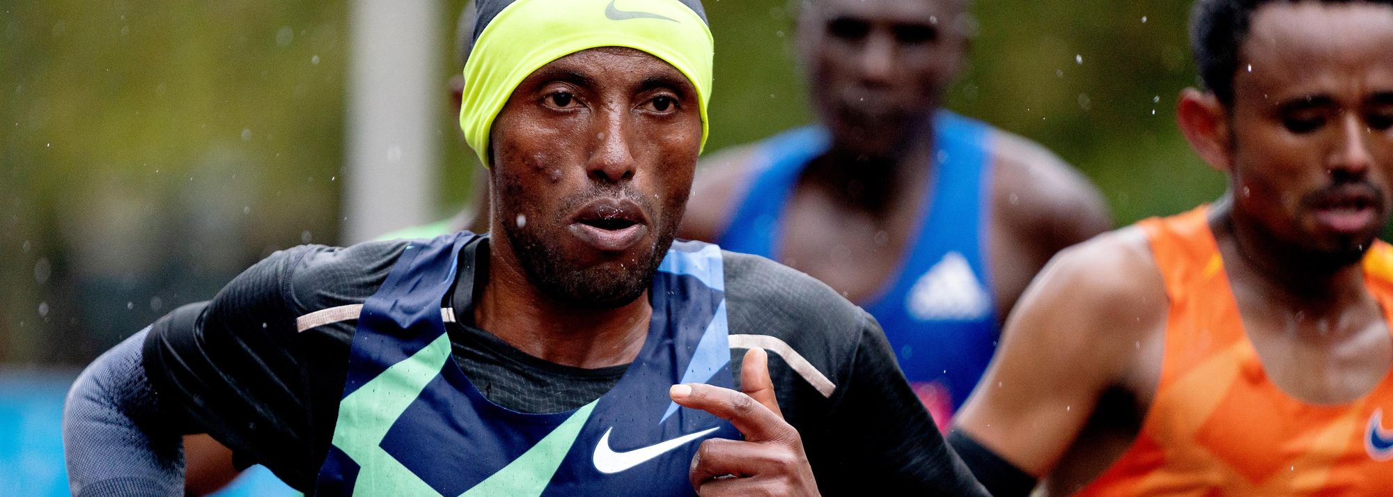 Shura Kitata en route to the 2020 London Marathon title (© Getty Images)