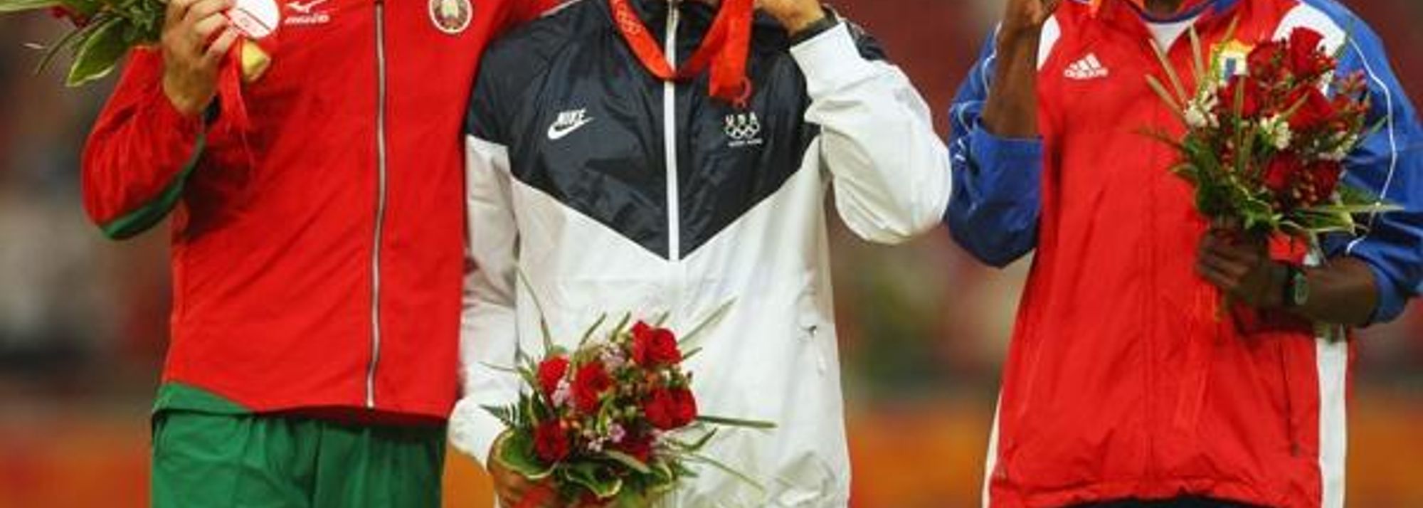 Decathlon medallists: Andrey Kravchenko, Bryan Clay and Leonel Suarez (© Getty Images)