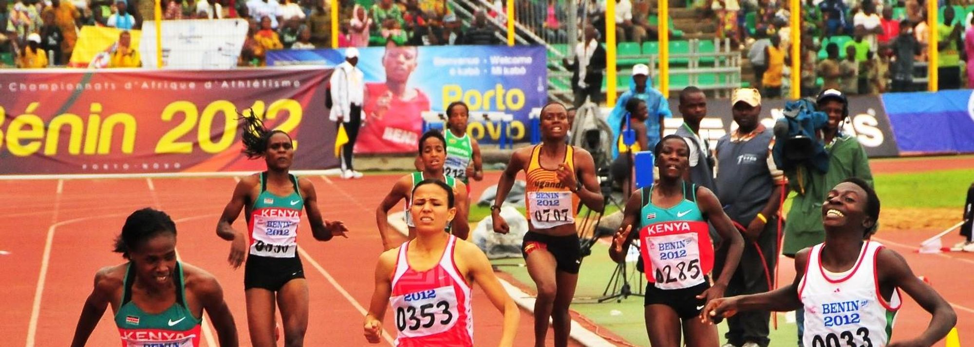 Francine Niyonsaba (r) winning the African 800m title in Porto-Novo (© Norman Katende)