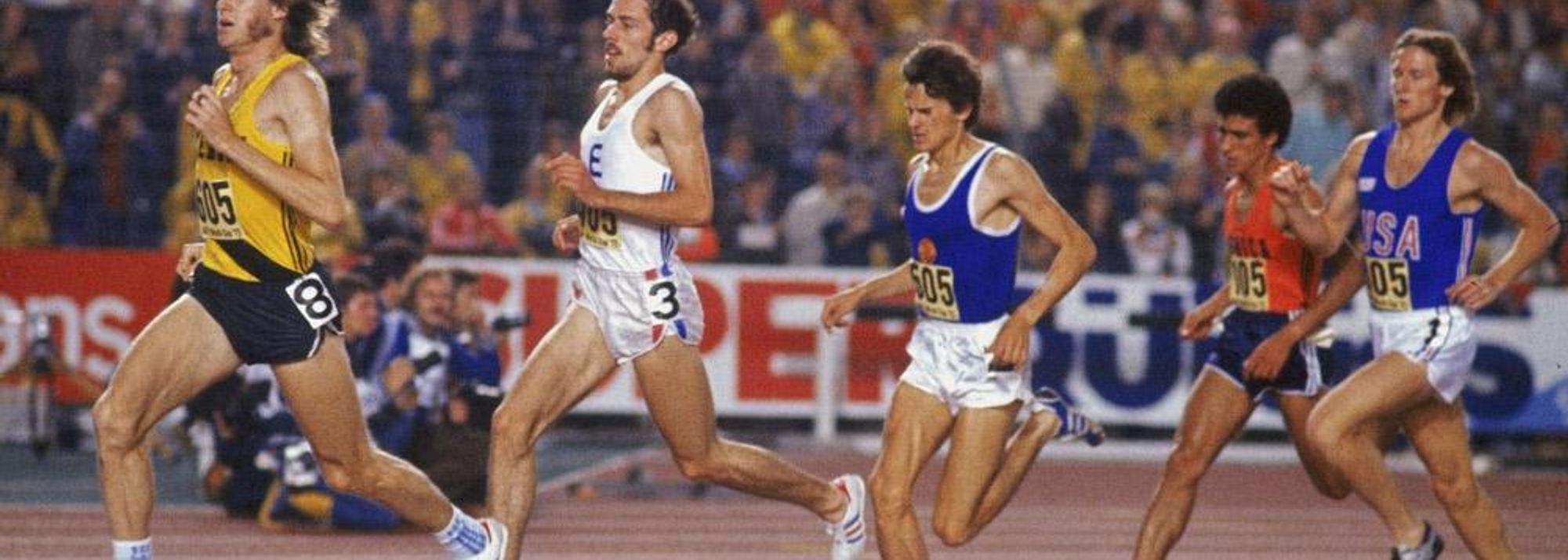 A classic! - John Walker, Steve Ovett, Jurgen Straub, Abderahmane Morceli and Steve Scott at the 1977 World Cup. Ovett won the race. (© Getty Images)