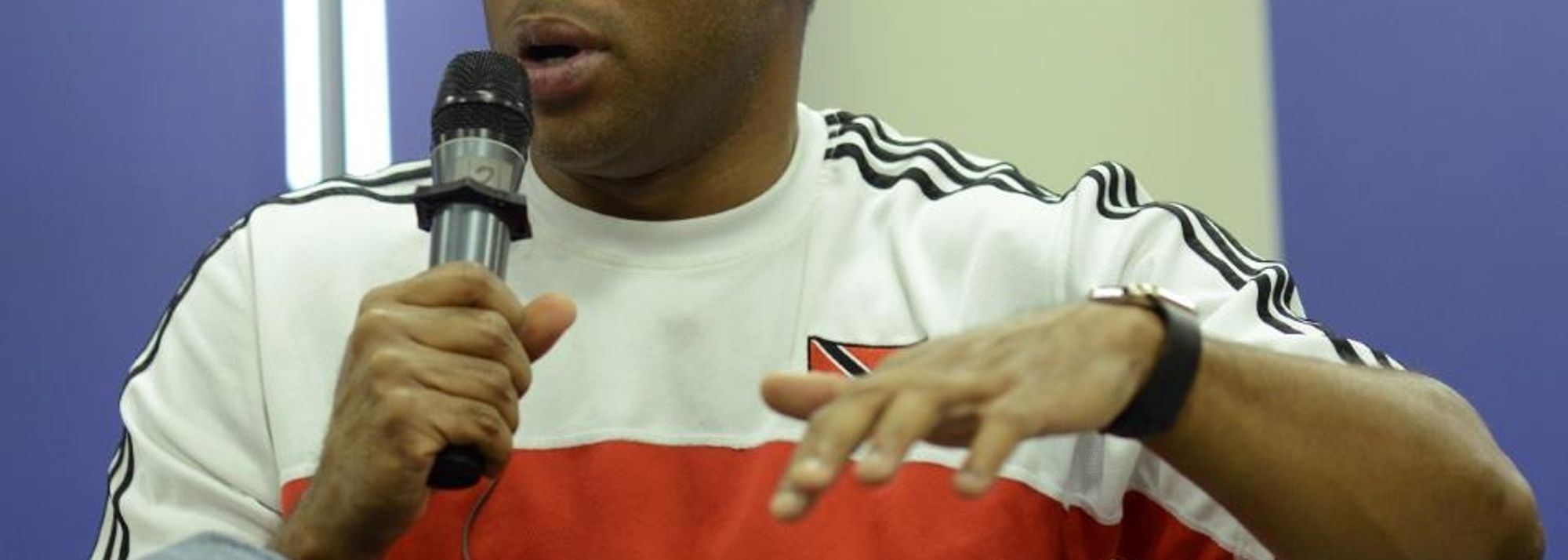 Ato Boldon at the press conference ahead of the IAAF World U20 Championships Bydgoszcz 2016 (© Getty Images)