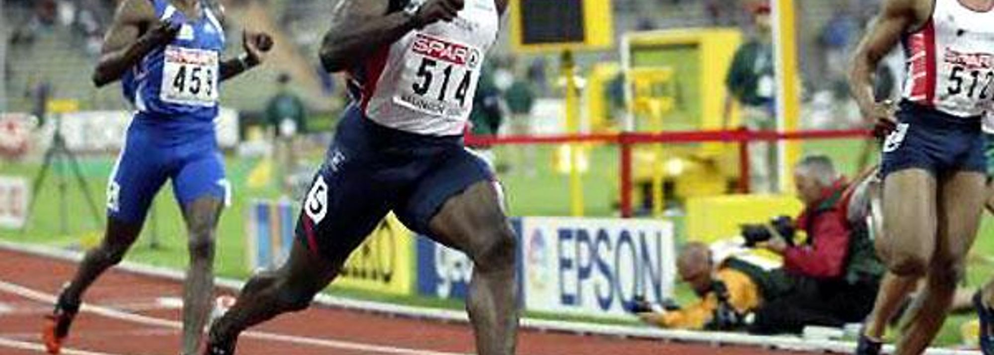 Dwain Chambers wins the European 100m title in 2002 (© Getty Images)