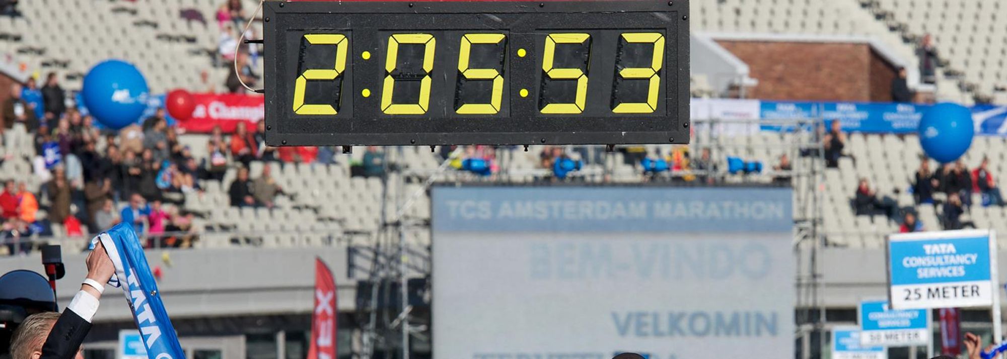 At the 20 kilometres marker (59:22) the leading group still consisted of 16 runners, including the pacesetters. Among the leaders was also Sileshi Sihine, the Ethiopian track star who was making his debut over the distance. But dropping out after 36 kilometres, he failed to reach the finish line in Amsterdam’s historic 1928 Olympic Stadium of Amsterdam.