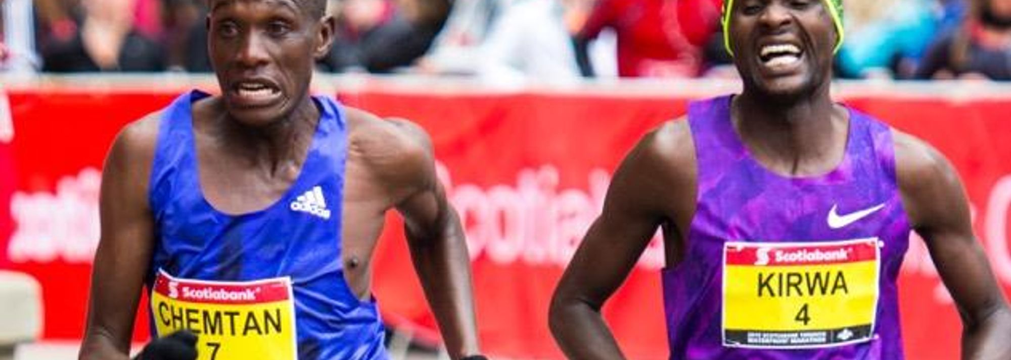 Less than a second separated Kenyans Ishhimael Chemtan and Gilbert Kirwa at last year’s Scotiabank Toronto Waterfront Marathon with Chemtan’s sprint proving to be the difference, earning victory in 2:09:00.