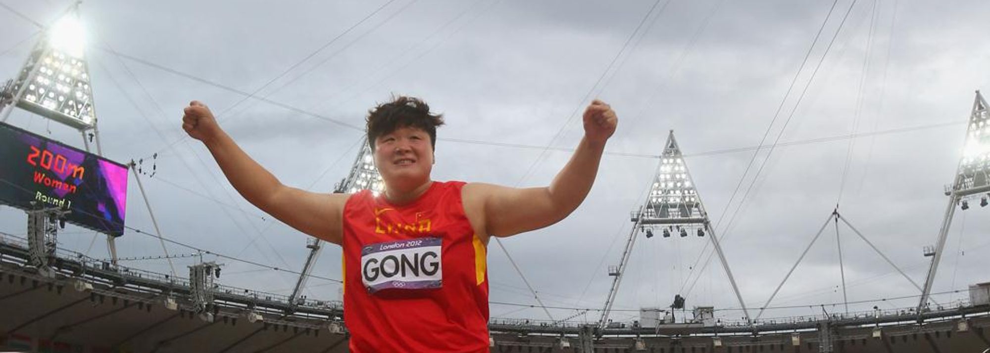 Lijiao Gong of China reacts after a throw in the Women's Shot Put final on Day 10 of the London 2012 Olympic Games at the Olympic Stadium on August 6, 2012 (© Getty Images)