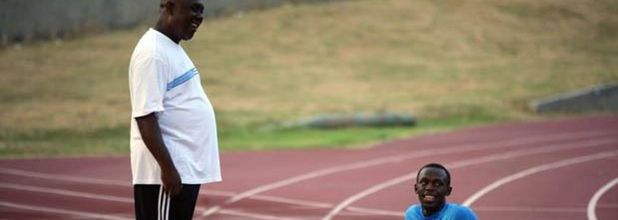 Glenn Mills with Usain Bolt in Kingston (© Getty Images)