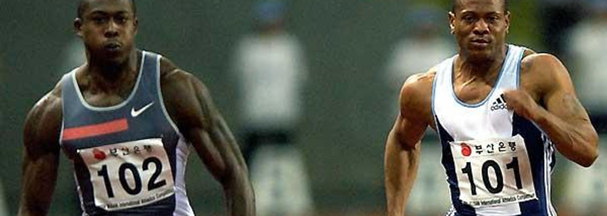 Shawn Crawford and Maurice Greene racing in Busan (© AFP/Getty Images)