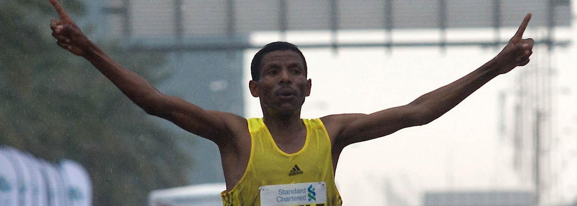 Torrential rain in the final stages ruined Haile Gebrselassie’s World Record attempt in the Standard Chartered Dubai Marathon on Friday morning. But the Ethiopian still took the $250,000 first prize, winning in 2:05:29, the eighth fastest in history. He already has the top three times.