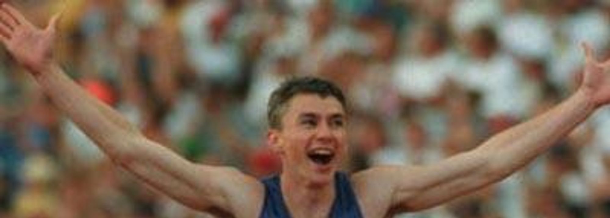 Jonathan Edwards celebrates his world record jump in Gothenburg 1995 (© Getty Images)