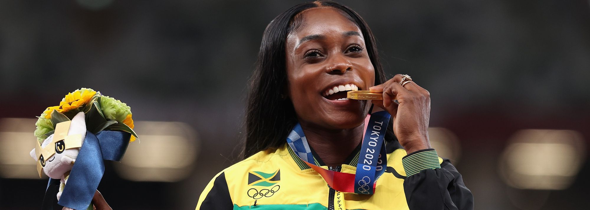 Elaine Thompson-Herah receives her Olympic 200m gold medal in Tokyo (© Getty Images)