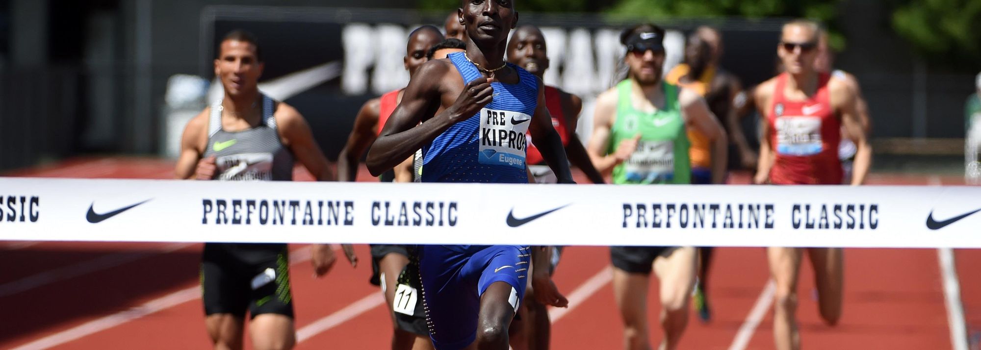 Asbel Kiprop winning the Bowerman Mile at the 2016 IAAF Diamond League meeting in Eugene (© Kirby Lee)