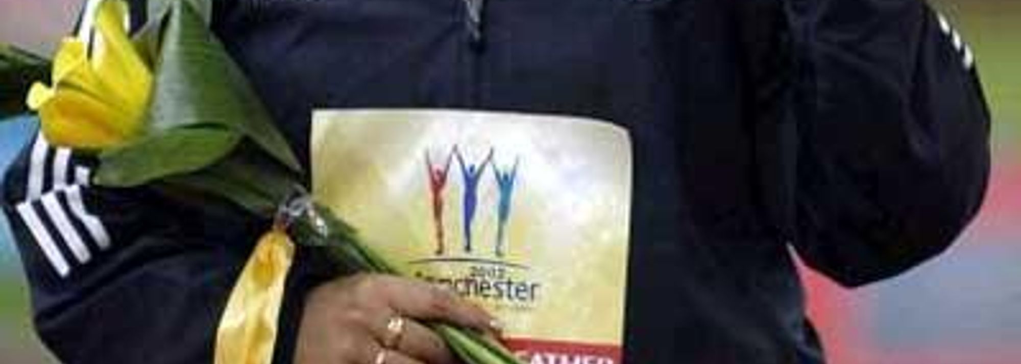 Beatrice Faumuina (NZL) with 2002 Commonwealth Discus gold medal (© Getty Images)