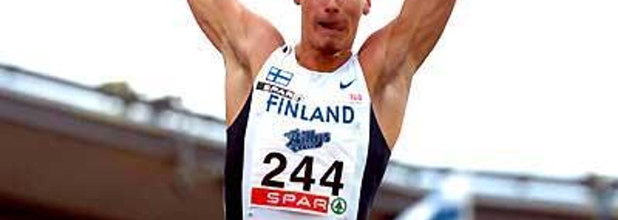 Evilä not only competed successfully in his own event the Long Jump: As captain of the Finnish team he was also very energetic in pushing on his team-mates in all events during the two long days! Returning to the stadium where he last year set a PB with 8.15 he once more improved his best as he surpassed the 8.18 NR set in the Helsinki qualification by one centimetre. Evilä´s winning mark was a slightly wind-aided 8.20.