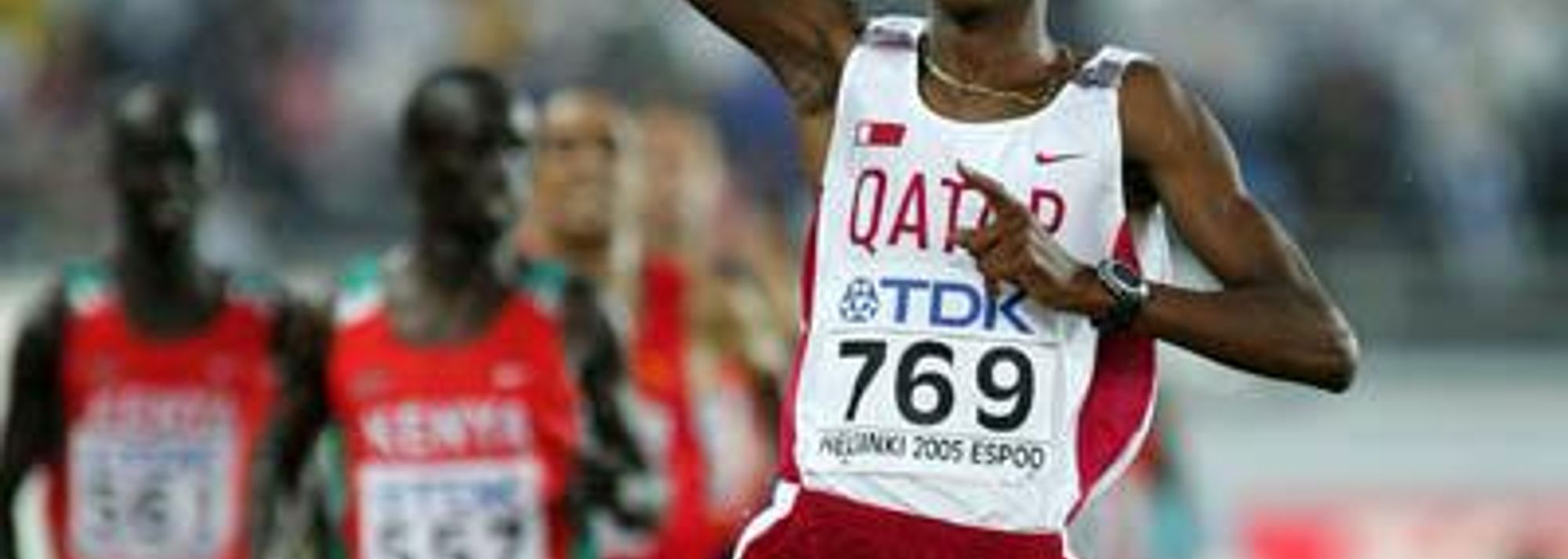 Saif Saaeed Shaheen of Qatar wins the 3000m Steeplechase in Helsinki (© Getty Images)