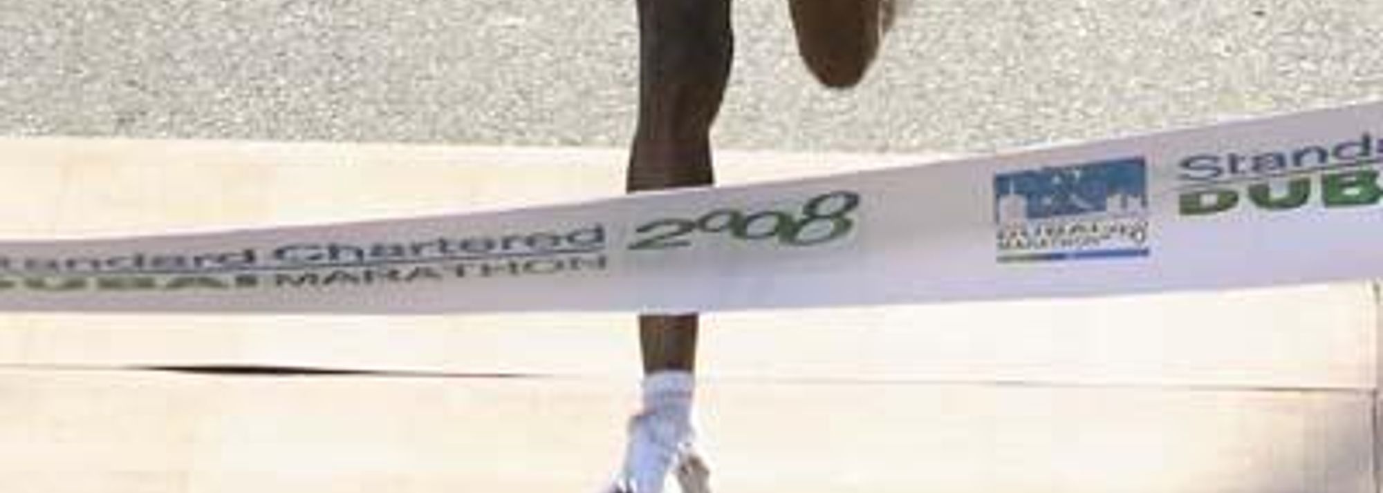 Haile Gebrselassie wins the 2008 Dubai Marathon (© c)