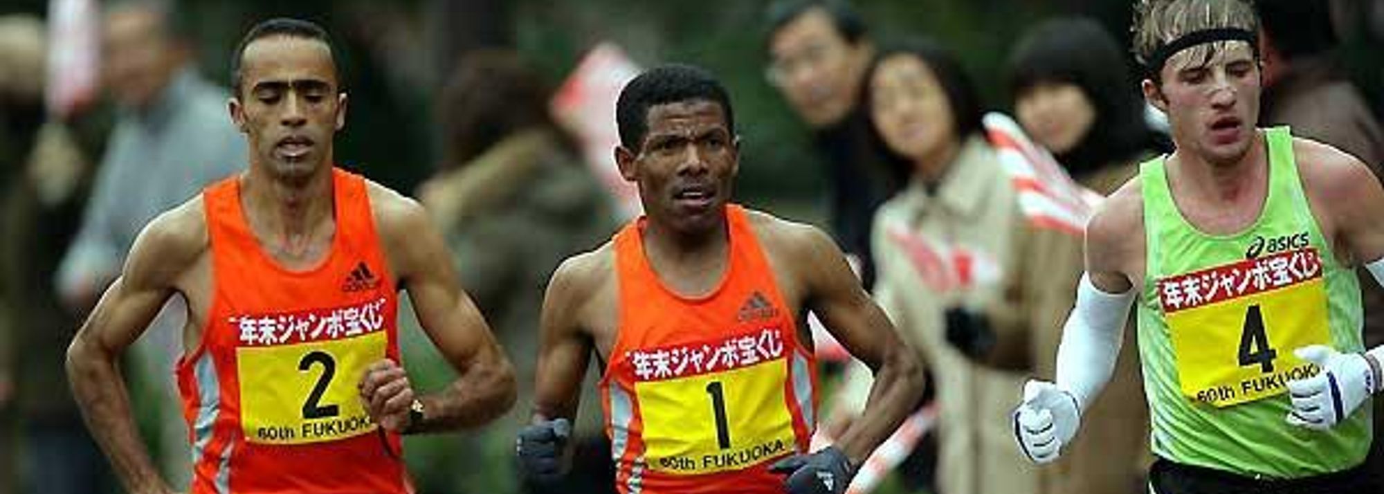 Gebrselassie’s winning time in Fukuoka today was one second short of the course record, 2:06:51, set by Atsushi Fujita in 2000. Fujita was also in the race but only finished eighth with 2:11:50.