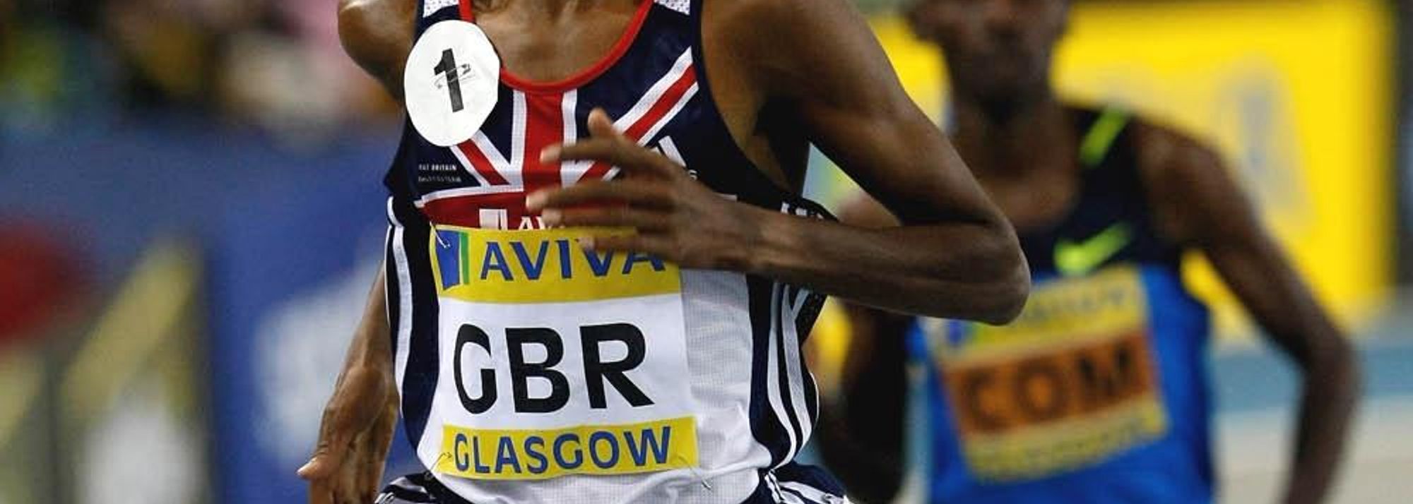 Mo Farah en route to his 7:40.99 3000m national record at the 2009 Glasgow indoor meeting (© Getty Images)