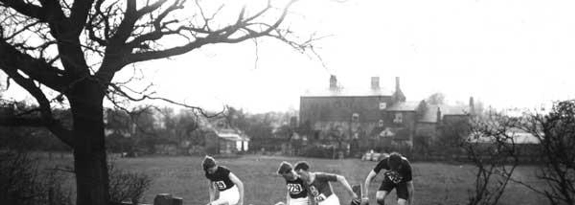 March 1913: Competitors in the English National Cross Country Championships climbing over a gate on the route (© Topical Press Agency/Getty Images)