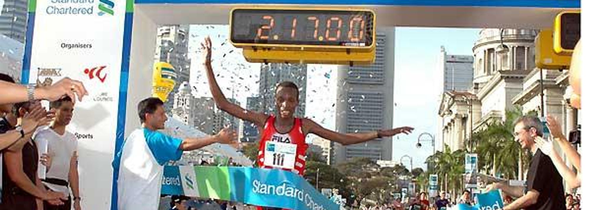 Philip Tanui (KEN) with 2:17:02 breaks 20 year course record in 2004 Singapore Marathon (© c)