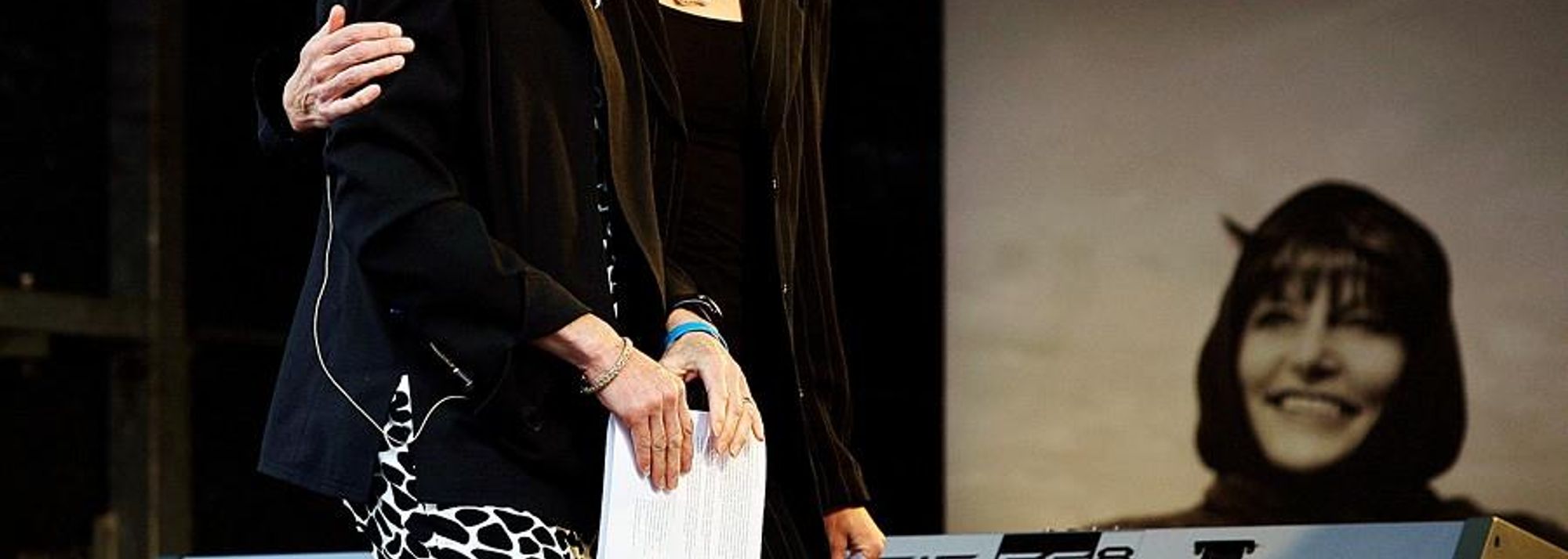 Joan Benoit Samuelson and Rosa Mota at a ceremony honouring the life of Grete Waitz at Oslo's Bislett Stadium (© organisers)