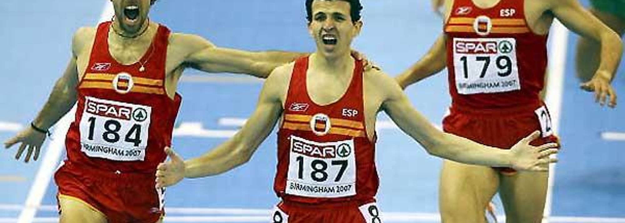1500m- Juan Carlos Higuero (187), Sergio Gallarado (184), Arturo Casada (179) - Spanish sweep 1500m podium in 2007 European Indoor Champs (© Getty Images)